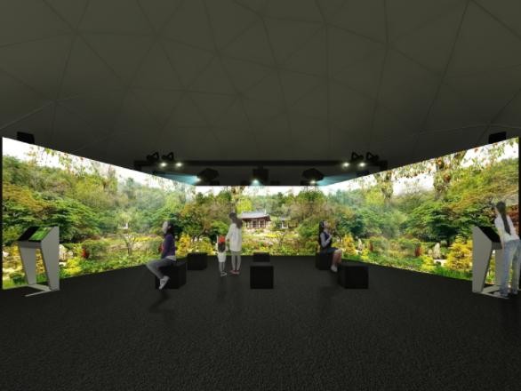 이동형체험관은 디지털영상관과 실감체험관 총 2개관으로 운영한다. ▲ 디지털영상관은 3면영상(5종)을 통해 문화유산 현장을 실감나게 관람할 수 있고, 공연자와 관람객이 상호 소통하는 인터랙티브 공연·강연(4종)을 즐길 수 있다. ▲ 실감콘텐츠관은 첨단 디지털기술로 구현된 문화유산 가상체험(VR 6종)과 증강현실(AR 3종) 등을 통해 남해안일대 공룡화석지 등을 살펴볼 수 있어 시공간을 넘나드는 문화유산 디지털체험을 할 수 있다.
