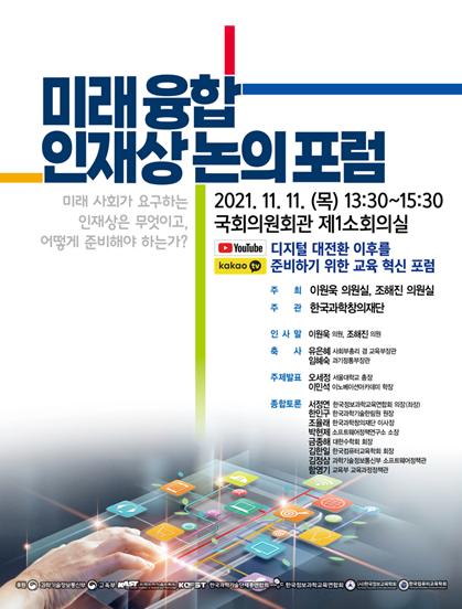 국회 이원욱 의원실과 조해진 의원실 공동주최로 개최된 이번 포럼은 미래사회를 이끌어 갈 융합인재상과 이를 위한 교육의 방향을 논의하기 위해 마련되었다.