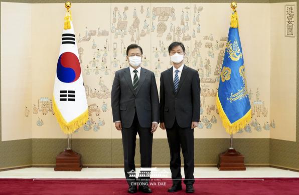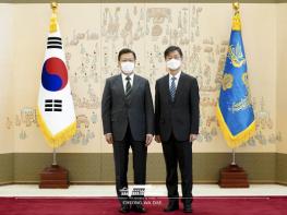 문재인 대통령은 오늘 오전 청와대에서 최재해 신임 감사원장에 임명장을 수여했다. 수여식 이후 환담에서 문 대통령은 “최 원장은 감사원 73년 역사상 최초의 내부 출신 원장으로, 오랜 기간 감사원에서 근무하면서 능력을 인정받고 신망이 두터워 기대가 크다”고 말했다.
