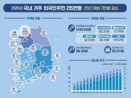 이는 2019년 221만 6,612명에 비해 6만 9,864명(3.2%) 감소한 수치로, 2006년 통계 발표 이래 지속적으로 증가하던 외국인주민 수가 처음으로 감소한 것이다.