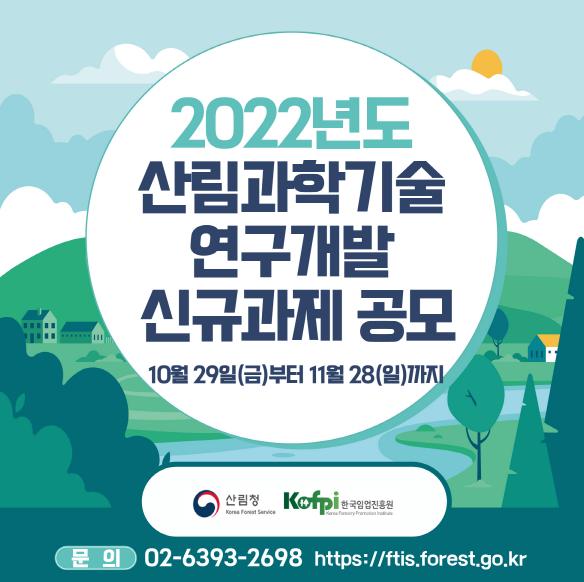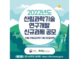 산림청과 한국임업진흥원은 10월 29일부터 11월 28까지 2022년도 산림과학기술 연구과제 신규과제 선정을 위한 공고 및 접수를 진행 중이다.
