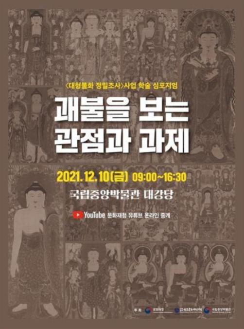문화재청은 (사)성보문화재연구원, 국립중앙박물관과 함께 ‘괘불을 바라보는 관점과 과제’를 주제로 12월 10일 국립중앙박물관 대강당에서 학술대회를 개최한다.?