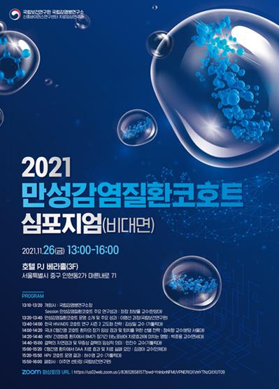 질병관리청 국립보건연구원은 11월 26일 13시부터 서울 중구에서 에이즈, 간 질환, 자궁경부암, 결핵에 대한 ‘2021년 만성감염질환 코호트 심포지엄’을 비대면으로 개최한다고 밝혔다.