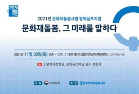 문화재청이 주최하고 중앙문화재돌봄센터에서 주관하는 ‘문화재돌봄사업 정책심포지엄’이 ‘문화재돌봄, 그 미래를 말하다’라는 주제로 오는 30일 오후 13시부터 대전 케이더블유(KW)컨벤션센터에서 개최된다.