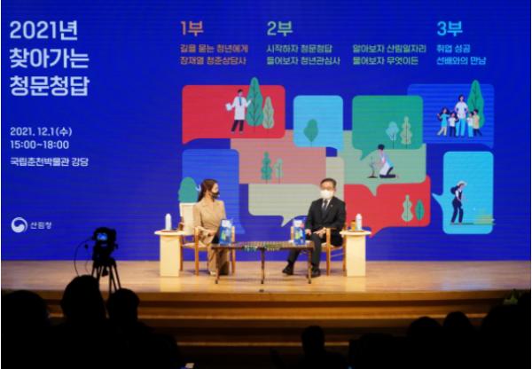 산림청은 청년들의 고민과 궁금증을 “청장이 묻고, 청년이 답하다”라는 형식의 청문청답(廳問靑答) 행사를 1일 강원대학교 학생 80여 명과 강원도 국립춘천박물관에서 실시했다.