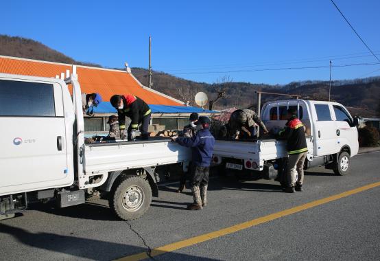 이날 행사는 센터의 충주지소에서 산림용 종자를 생산하는 과정에서 나온 부산물을 땔감으로 이용할 수 있도록 적당한 크기로 잘라, 수안보면사무소의 협조를 받아 선정한 가구에 땔감 1톤 트럭 총 6대 분량(약 6톤)을 직원들이 직접 방문하여 전달하였다.