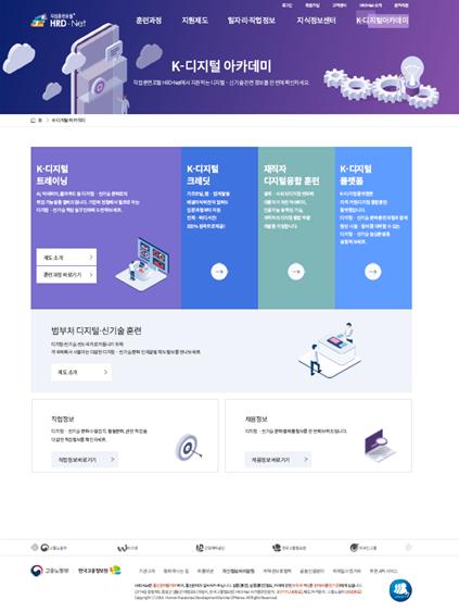 이제 직업훈련포털(HRD-Net)에서 ?K-디지털 아카데미? 서비스를 통해 정부지원 디지털?신기술 훈련정보를 한 번에 찾아볼 수 있다.