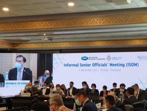 이성호 경제외교조정관은 12.1.-12.3. 태국 푸켓에서 개최된 아시아태평양경제협력체(APEC) 비공식고위관리회의(ISOM)에 참석해 올해 APEC 주요 결과를 평가하고 내년도 활동 방향을 논의했다.