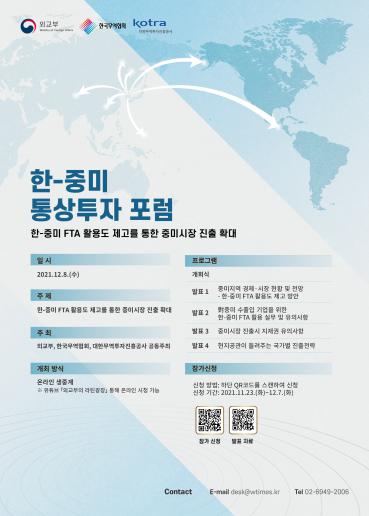 외교부는 한국무역협회 및 대한무역투자진흥공사와 함께 12.8. 오전 화상으로 「한-중미 통상·투자 포럼」을 개최한다.