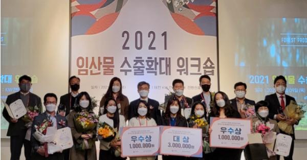 수출 유공 포상으로는 산나물 및 건나물 제품 생산·가공업체인 평창팜의 정재현 대표가 농림축산식품부 장관상을, 신농영농조합법인 김유경 대표, 주식회사 도들샘 노태욱 대표, 충청남도 논산시 강의정 주무관이 산림청장상을 수상했다.