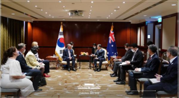 이에 알바니즈 대표는 “국경을 마주하고 있는 국가로부터 공격의 위험이 없는 섬나라 호주는 대한민국이 지금까지 평화를 위해 기울여온 노력에 경의를 표한다”고 말했다. 또한 “역내 안보 불확실성은 세계 안보의 불확실성을 초래한다”면서, “한반도에서 70년 동안 평화가 선언되지 않았다는 점을 안타깝게 생각하고, 한반도의 비핵화와 평화를 적극 지지한다”고 말했다.