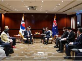 문 대통령은 “유엔 총회에서 제안한 종전선언은 70년간 지속된 불안정한 정전체제를 공고한 평화체제로 바꾸어 나가기 위한 첫걸음이며, 비핵화를 위한 중요한 모멘텀으로 작용할 것”이라면서, “한반도 평화 프로세스를 위한 한국 정부의 노력에 호주가 변함없는 지지를 보내준 데 대해 감사드리며, 앞으로도 굳건한 지지와 협조를 요청한다”고 말했다.