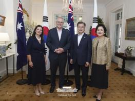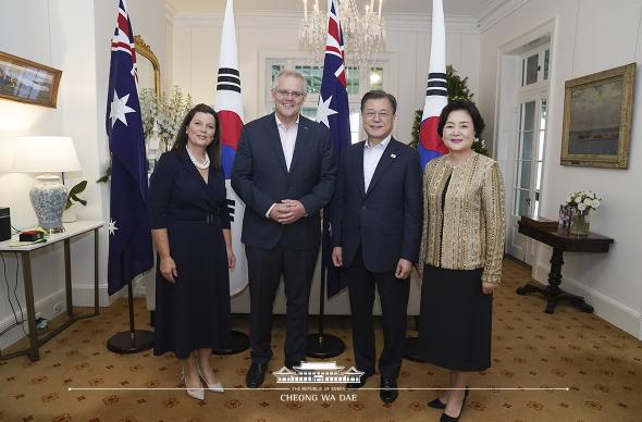 문재인 대통령 부부는 14일 저녁(현지시각) 시드니 총리 관저(Kiriribilli House)에서 스콧 모리슨 호주 총리 부부와 만찬을 가졌다.