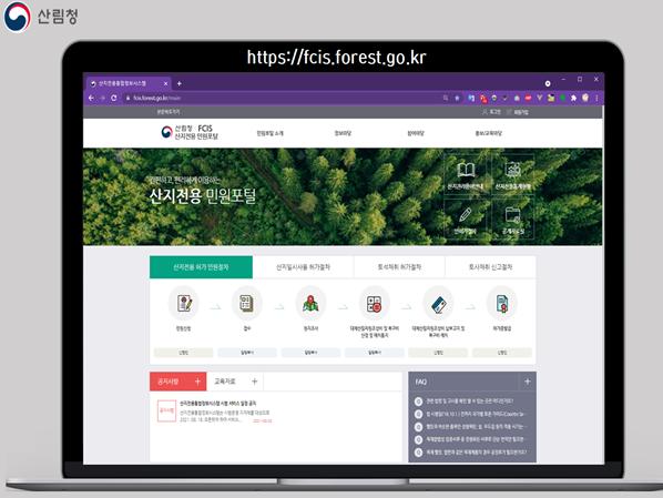 산림청은 산지전용허가 등 산지분야 민원의 접수부터 사후관리까지 전반을 전자적으로 처리할 수 있는 ‘산지전용통합정보시스템’을 구축하여 22년 1월부터 전국 지자체 등 83개 산지관리기관에서 비대면 온라인 서비스를 시작한다.