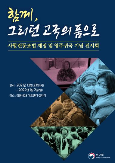 외교부는 오늘 기념식과 함께 사할린동포들의 모습을 담은 사진과 영주귀국자들의 그림 작품을 전시하는 '사할린동포법 제정 및 영주귀국 기념 전시회'를 12.23.(목)-1.2.(일) 간 서울 정동1928 아트센터에서 개최할 예정이다.