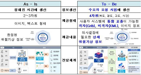 또한, 국토교통부와 기상청은 국가항행계획에 따라 항공기 운항의 의사결정을 지원하는 실시간 4D(위도·경도·고도 시간) 기상정보와 위험기상 발생확률·위험수준 등을 포함한 영향정보 마련 등 ‘기상정보 스마트화’ 과제의 차질 없는 추진을 위해 상호 필요한 사항을 적극 지원·협력키로 하였다.