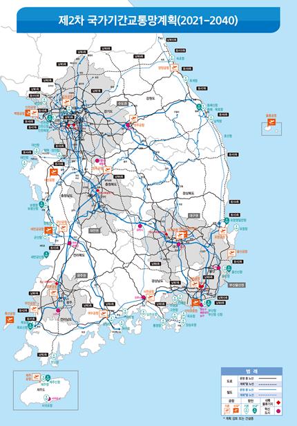 국토교통부는 향후 2040년까지 국가 교통물류체계 구축 방향을 제시하기 위한 '제2차 국가기간교통망계획(`21∼`40)'및 국가기간교통망계획의 하위 실천계획인 '제5차 중기교통시설투자계획(`21∼`25)'안을 국가교통위원회 심의를 거쳐 확정하고, 12월 28일 국무회의에 보고했다.