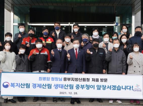 최병암 산림청장은 28일 중부지방산림청을 처음방문하여 직원들과 함께 소통과 격려의 시간을 가졌다.