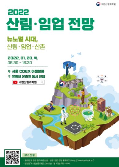 산림청 국립산림과학원이 1월 20일, 코엑스(아셈볼룸)에서 개최되는 '2022 산림·임업 전망 발표대회'의 현장 참가자 사전신청을 시작했다고 밝혔다.