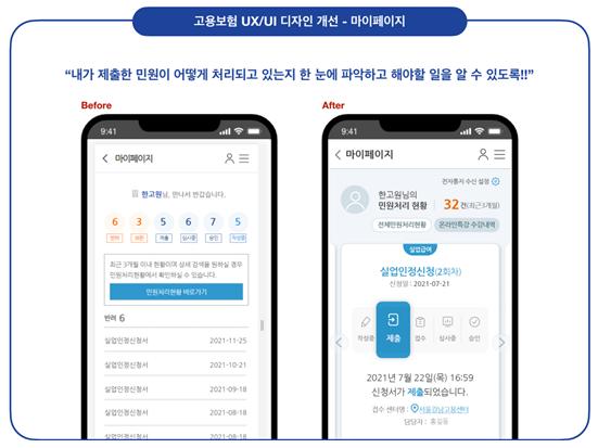 더불어, 고용보험 누리집의 ‘마이페이지’ 등 콘텐츠와 화면 구성을 사용자 친화적으로 개선했다.