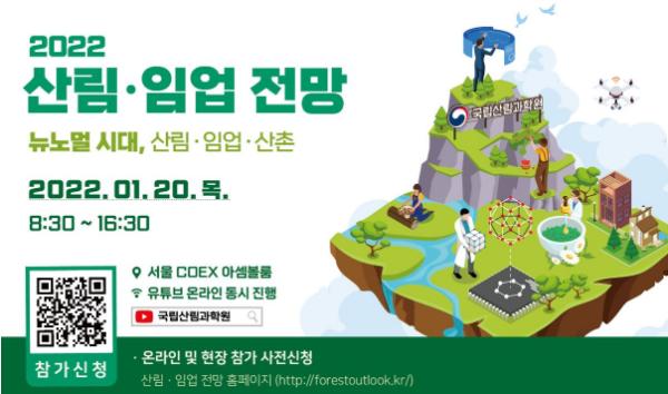산림청 국립산림과학원은 1월 20일, '2022 산림·임업 전망발표 대회'를 온라인과 오프라인(코엑스 아셈볼룸)으로 동시 개최한다고 밝혔다.