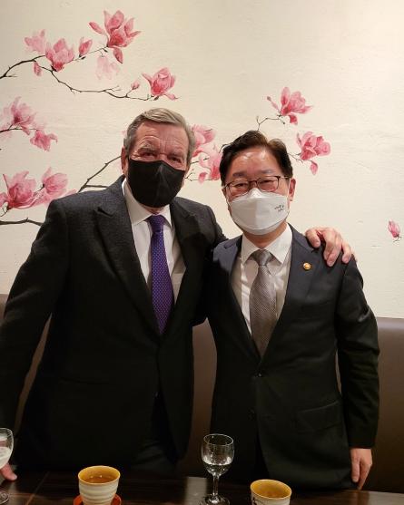 이후 박범계 장관과 슈뢰더 전 총리는 함께 하노버의 유일한 한식당을 찾아 21시까지 남북관계, 탈원전, 탄소중립, 중소기업이 견인하는 경제성장 정책, 사회통합정책 등에 대해 심도 있는 논의를 진행하는 등 우의를 다지고 우리나라에서의 재회를 기약했다.