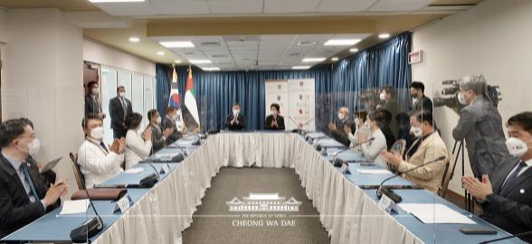 문 대통령은 이어 “UAE에서 서울대병원의 성공으로 여러 국가에서 감당하지 못할 정도로 참여 요청을 받고 있다는 이야기를 들었다”면서 “이는 우리 의료산업 발전에도 도움이 되고, 그 나라 의료의 질도 높여 주는 효과가 있다”고 평가했다.