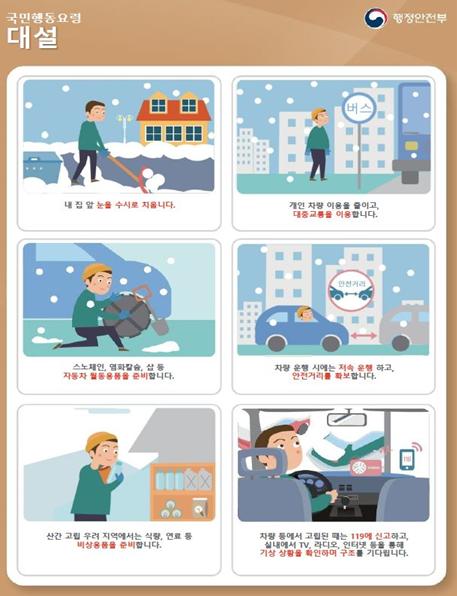 특히, 오늘 퇴근 시간대와 내일 출근 시간대에 눈이 집중되는 만큼 도시지역은 출퇴근길에 교통혼잡이 발생하지 않도록 사전에 제설·제빙 작업을 완료하고, 필요시 대중교통을 증편하도록 했다.