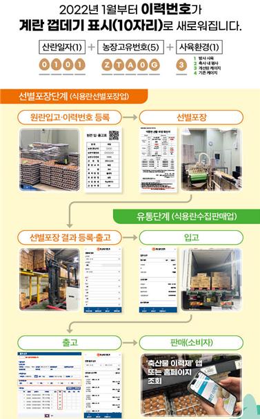 '계란 유통업자가 계란 포장지에 별도로 표시하는 계란 이력번호를 계란 껍데기 표시정보로 일원화'