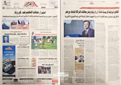 문재인 대통령은 이집트 공식방문을 계기로 현지 공영신문인 ‘알 아흐람(Al Ahram)’과 서면 인터뷰를 했다. 인터뷰 내용은 20일 오전(현지시각) 공개되었다.