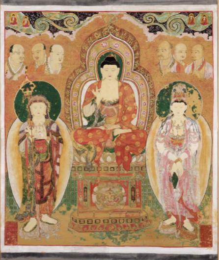 먼저, 곽선혜 외 11명(3학년 단체作)이 모사한 ‘강진 무위사 극락전 후불벽화(康津 無爲寺 極樂寶 後佛壁畵)’는 가로 119cm, 세로 142.8cm에 달하는 토벽채색으로 다년간의 수련을 통해 얻은 기량을 마음껏 드러낸 작품이다.