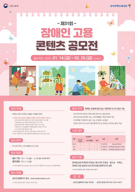 고용노동부와 한국장애인고용공단은 '2022년 제31회 장애인고용 콘텐츠 공모전'을 개최한다.