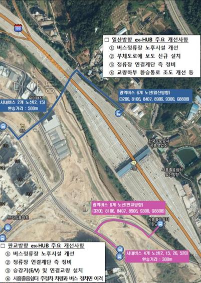 이에 따라 기존 환승정류장을 철거하고 정류장 안내기(BIS), 냉난방시설 등의 시설을 갖춘 스마트 환승정류장으로 새롭게 설치하였으며, 고속도로 쉼터와 혼재되어 있던 환승정류장을 구조적으로 분리하고 진입로 정비, 엘리베이터 설치 등 접근시설도 정비하여 교통사고 예방과 이용시민들의 안전도 확보할 수 있게 되었다.