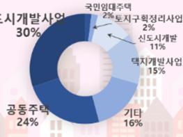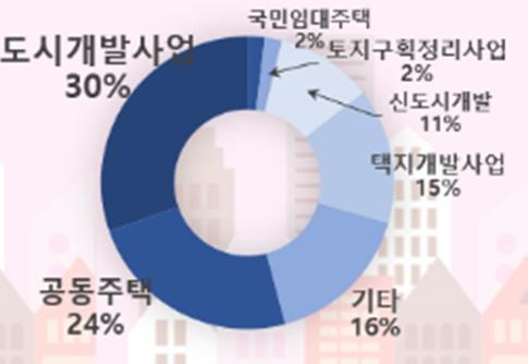 ’도시계획 사업‘ 관련 민원 중에서는 사업지구에서 제척 요구, 이주대책 대상자 선정 요구 등 ’도시개발 사업지구 지정·해제 및 보상‘과 관련된 민원이 30.4%로 가장 많았다. 다음으로 진출입로 단절 해소 요청 등 ’공동주택지구‘ 관련 민원이 23.8%, ’택지개발사업‘ 관련 민원이 15%로 나타났다.