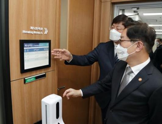 박범계 장관은 맹수석 원장으로부터 중재산업 기반 강화, 국내중재 활성화, 중재산업 경쟁력 확보 및 국제중재 유치 확대 등 중재산업 활성화를 위한 업무 추진 상황에 대한 설명을 듣고, 코로나19에 따른 화상중재 수요에 대응하여 구축한 화상중재심리 시설을 둘러보았다.