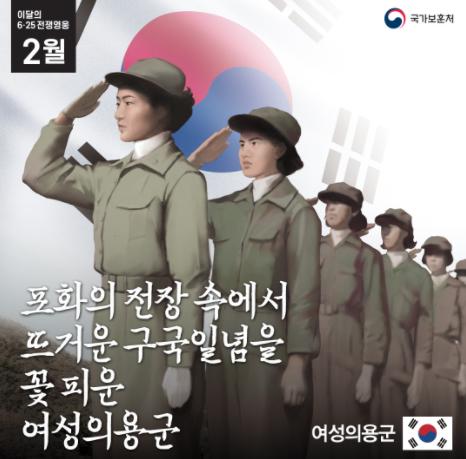 국가보훈처(처장 황기철)는 포화의 전장 속에서 뜨거운 구국일념을 꽃피운 ‘여성의용군’을 2월의 6.25 전쟁영웅으로 선정한다고 밝혔다.