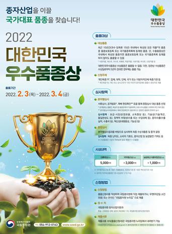 국립종자원은 2022년 제18회 대한민국우수품종상 출품 접수를 2월 3일부터 3월 4일까지 받는다.