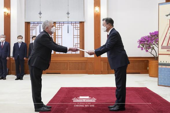 이에 대해 문 대통령은 “제기한 현안에 대해 정부에서 잘 챙겨보도록 하겠다”며, “한국에 근무하는 동안 양국 관계가 한 단계 도약하고 많은 성과가 있기를 바란다”며 접견을 마쳤다.