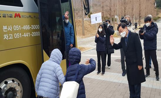 박범계 법무부장관은 환송사에서 “여러분들이 대한민국에 입국하는 순간부터 퇴소하기까지 전 과정을 함께해서 그런지 감회가 남다르다.”고 소회를 밝히며, “새로운 시작에 걱정이 앞서기도 하겠지만, 앞으로도 함께 할 대한민국 정부를 믿고 지역사회에 잘 정착해 주기를 바란다.”고 당부하였으며, “특별히 대한민국에 대한 국익 기여자로서 탈 없이 한국사회 적응 프로그램을 이수한 아프간인들을 수용해주는 울산지역사회에 큰 감사를 드린다.”고 감사를 표했다.