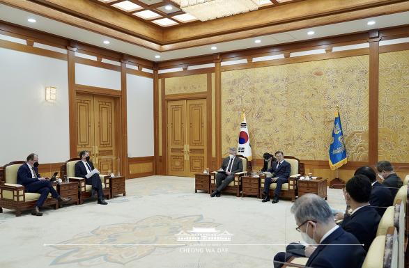 문 대통령은 “작년 2월 OECD가 한국개발연구원(KDI)과 함께 ‘OECD 포용적 성장 한국 사례 연구 보고서’를 발간했는데, 여기서 한국의 ‘한국판 뉴딜’ 정책과 코로나 대응을 경제, 사회 변화에 신속히 대응한 정책 사례로 높이 평가한 것에 감사하다”고 말했다.