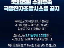 방위사업청은 2022년 국외조달 수리부속에 대한 입찰공고를 국방전자조달 누리집에 게재하였다.