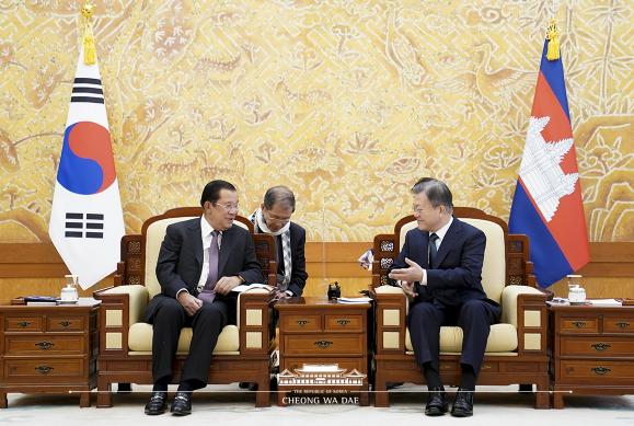 문재인 대통령은 방한 중인 훈센(Hun Sen) 캄보디아 총리와 11일 오후 면담을 갖고, 한-캄보디아 양국 간 실질 협력 증진 방안, 한-아세안·한-메콩 협력, 한반도 문제 및 미얀마 정세 등에 대해 폭넓게 논의했다.