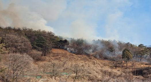 산림당국은 산불진화헬기 5대(산림 5)와 산불진화인력 176을 투입하여 산불진화를 완료하였다.