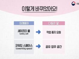 문체부는 ‘쉬운 우리말 쓰기 사업’의 하나로 국어원과 함께 외국어 새말 대체어 제공 체계를 구축해 운영하고 있다. 문체부와 국어원은 지난 2월 3일에 열린 새말모임을 통해 제안된 의견을 바탕으로 의미의 적절성과 활용성 등을 다각으로 검토해 ‘코워킹 스페이스’의 대체어로 ‘공유 업무 공간’을 선정했다.
