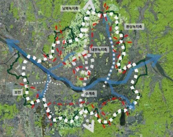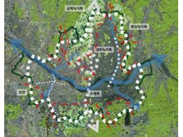 근대 이후 수도권의 남북 녹지는 선과 고리 모양으로 발달하였으며, 등산과 하이킹, 꽃구경 등 자연을 즐기는 대규모 위락공간으로 중요한 역할을 담당해왔다.