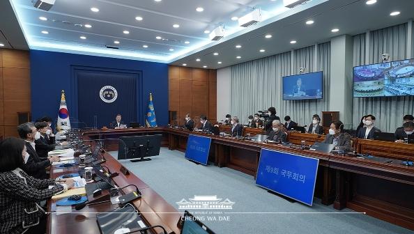 문재인 대통령은 오늘 오전 10시 청와대에서 정부 서울청사·세종청사와 영상회의로 열린 제9회 국무회의를 주재했다. 법률안인 '경찰공무원법 일부개정법률안'과 '감염병의 예방 및 관리에 관한 법률 시행령 일부개정령안' 등 대통령령안 10건, '2022년도 제1회 추가경정예산안의 국회 증액에 대한 동의 및 예산 공고(안)', '청년희망적금 운영방안(안)' 등 일반안건 8건, 보고안건인 '제4차 자격관리·운영 기본계획(2022~2026)(안)'을 심의·의결했다.