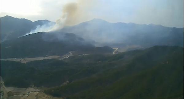 현재 산불현장 기상은 순간풍속 7m/s의 강풍을 타고 확산중에 있으며, 산림청장(최병암)은 16시 50분을 기준으로 '산불 1단계'를 발령했다.