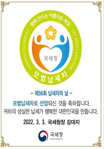 국세청은 제56회 납세자의 날을 맞이하여 모범납세자 및 아름다운 납세자를 선정하여 수상자에 대한 포상을 실시했다.