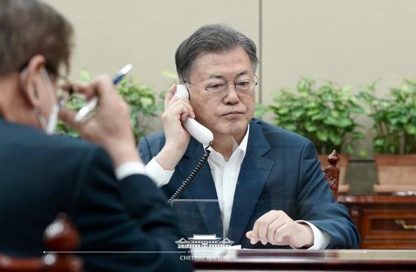 문재인 대통령은 우크라이나 볼로디미르 젤렌스키 대통령과 오늘 오후 5시 35분부터 6시 5분까지 30분 동안 통화를 했다.
