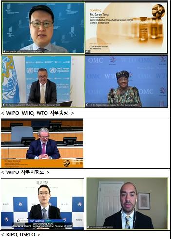 세계지식재산기구의 마르코 알러만(Marco Alem?n) 사무차장보를 좌장으로 한 ‘특허 현황 보고서’ 발간행사의 발표회(세미나)에는 코로나19와 관련된 주요 국제기구의 전문가, 교수뿐만 아니라 한국 특허청을 비롯하여 미국·중국특허청의 특허전문가가 참여하였고,